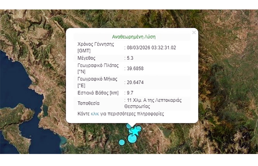 Σεισμός 5,3 Ρίχτερ στη Θεσπρωτία: Αισθητός σε Θεσσαλία και Ιόνιο