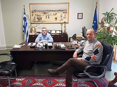 Στην πρόσφατη επίσκεψη του στην Καρδίτσα, ο Περιφερειάρχης Θεσσαλίας Δημήτρης Κουρέτας είχε σειρά επαφών με θεσμικούς και κοινωνικούς φορείς, μεταξύ αυτών και με τον Δημοσιονομικό Ελεγκτή και πρώην Δήμαρχο Σοφάδων, Μπάμπη Παπαδόπουλο, με τον οποίο συζήτησε διεξοδικά για αγροτικά θέματα.