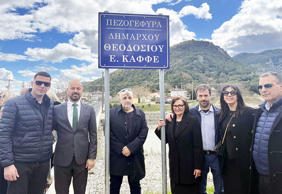 Με πλήθος κόσμου και σε κλίμα συγκίνησης πραγματοποιήθηκε την Κυριακή 29 Μαρτίου, η εκδήλωση για την ονοματοδοσία της Πεζογέφυρας “Θεοδοσίου Ε. Καφφέ” στο Μουζάκι, με συντονίστρια την κ.Φανή Δασκάλου, Πρόεδρο Δημοτικού Συμβουλίου.