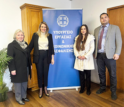 Στο πλαίσιο του καταστατικού σκοπού του Συλλόγου των απανταχού εκ του Νομού Καρδίτσας καταγομένων, ανάδειξης και προβολής των προβλημάτων της ιδιαίτερης πατρίδας μας, κι εντεύθεν, επίλυσης αυτών, το προεδρείο του κεντρικού φορέα των απόδημων Καρδιτσιωτών, αποτελούμενο από τους κ.κ. Κων/νο Κουσαή (Πρόεδρο Δ.Σ.), Αλεξάνδρα Θεολόγη (Α' Αντιπρόεδρο Δ.Σ.) και Βασιλική Τσιαπώκη (αν. μέλος Δ.Σ.), συναντήθηκε την 2.4.2026 στο Υπουργείο Εργασίας και Κοινωνικής Ασφάλισης, με την Υφυπουργό κ. Άννα Ευθυμίου.