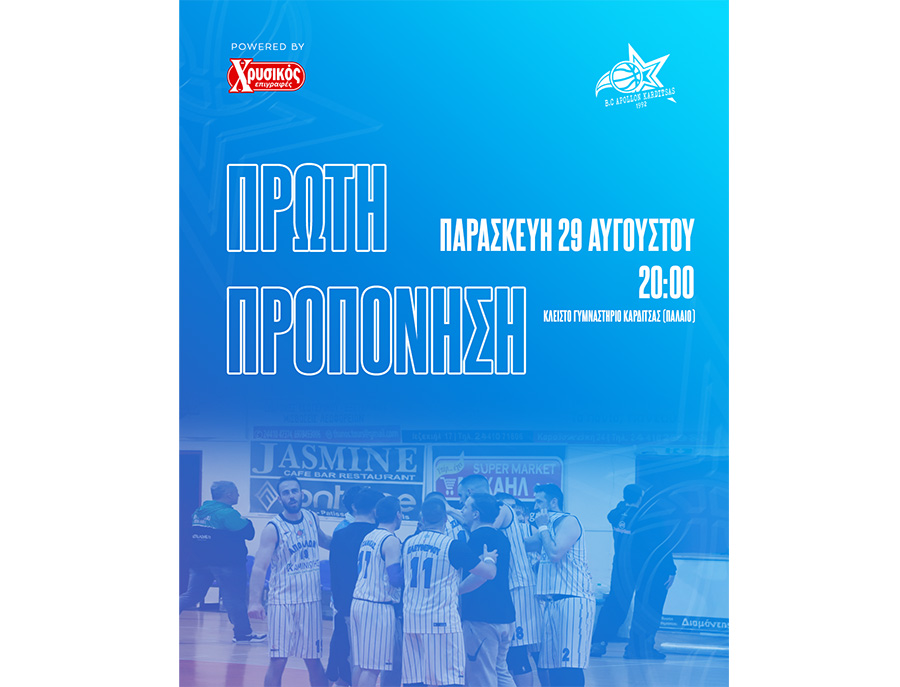 Η εκκίνηση της προετοιμασίας θα δοθεί στο Κλειστό Γυμναστήριο του Ε.Α.Κ. Καρδίτσας, εκεί που οι «κυανόλευκοι» θα δώσουν -εκτός απροόπτου- την πρώτη τους επίσημη αναμέτρηση για τη νέα σεζόν, την Κυριακή 14 Σεπτεμβρίου για το θεσμό του Κυπέλλου ΕΣΚΑΘ.