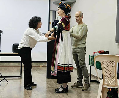 Στο Εργαστήρι, το οποίο ξεκίνησε με ένα θεωρητικό και συνέχισε με ένα πρακτικό- βιωματικό μέρος, παρουσιάστηκαν τόσο οι νυφιάτικες – «καλές» φορεσιές από τους κύκλους των Σοφάδων, του Παλαμά, της Καρδίτσας και των Τρικάλων, όσο και οι ενδυμασίες της φυσικής και της κοινωνικής ηλικίας της Καραγκούνας. Έγινε, επίσης, αναφορά στις ανδρικές ενδυμασίες αυτών των κύκλων, στα βασικά μοτίβα και σύμβολα στο σχέδιο και το κέντημα των ρούχων, αλλά καιστα βασικά στοιχεία της παιδικής και της εφηβικής φορεσιάς. Μέσα από τη συζήτηση με το κοινό αναδύθηκε ο προβληματισμός για τα αντίγραφα των ρούχων που οι πολιτιστικοί φορείς χρησιμοποιούν στις παραστάσεις τους, οι δυσκολίες στη συντήρηση και την ανάδειξή τους και οι τρόποι διαχείρισής τους από τους φορείς για την εξυπηρέτηση των αναγκών τους.
