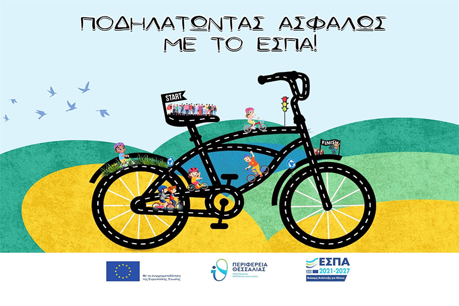 Το «Ποδηλατώντας ΑΣΦΑΛΩΣ με το ΕΣΠΑ» είναι ένα εκπαιδευτικό πρόγραμμα της Περιφέρεια Θεσσαλίας με την συνδρομή της Ειδικής Υπηρεσίας Διαχείρισης και την συνεργασία της Περιφερειακής Διεύθυνσης Εκπαίδευσης Θεσσαλίας, το οποίο σχεδιάστηκε για να ενημερώσει τα παιδιά για τη βιώσιμη ανάπτυξη και την ασφαλή κυκλοφορία με ποδήλατο, εξηγώντας πώς τα ευρωπαϊκά κονδύλια του Προγράμματος συμβάλλουν σε αυτό.