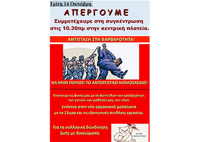 Τρίτη 14 Οκτώβρη ΑΠΕΡΓΟΥΜΕ!