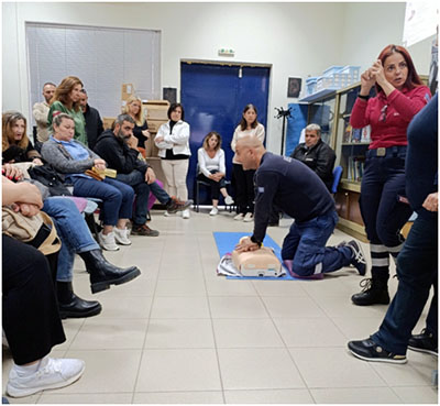 Έδειξαν στάσεις ανάνηψης και δίδαξαν την τεχνική της καρδιοαναπνευστικής αναζωογόνησης (ΚΑΡΠΑ), όπως και τη χρήση απινιδωτή. Υπέδειξαν ακόμη τα σημεία που υπάρχουν απινιδωτές στην πόλη μας και κάποιες κοινότητες, την άμεση κλήση του 166 για τον αστικό ιστό ή του 112 για απομακρυσμένες ή χωρίς σήμα περιοχές, τονίζοντας πως αν δράσουμε σωστά, γρήγορα και ψύχραιμα, μπορούμε να σώσουμε έναν άνθρωπο, γιατί ο ΧΡΟΝΟΣ που χάνεται είναι ΖΩΗ που χάνεται.
