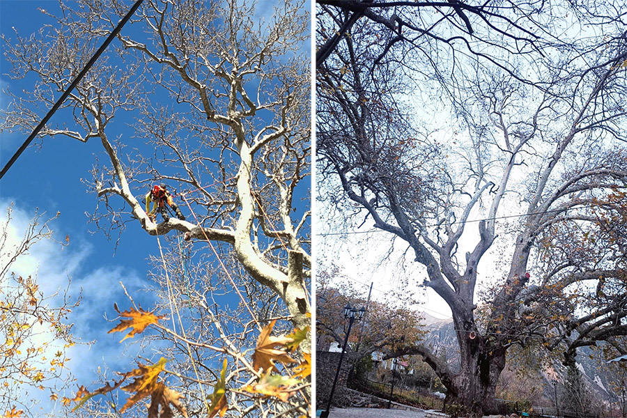 Ειδικότερα, το συνεργείο, ακολουθώντας κατά γράμμα όλες τις προβλεπόμενες διαδικασίες και τις οδηγίες του Δασαρχείου Μουζακίου, ξεκίνησε σήμερα το πρωί την προσεκτική κοπή των προσβεβλημένων κλαδιών. Στόχος είναι η αναχαίτιση της επικίνδυνης ασθένειας και η διάσωση του υπεραιωνόβιου πλατάνου, ο οποίος αποτελεί ζωντανό σύμβολο της φυσικής και πολιτιστικής κληρονομιάς μας.