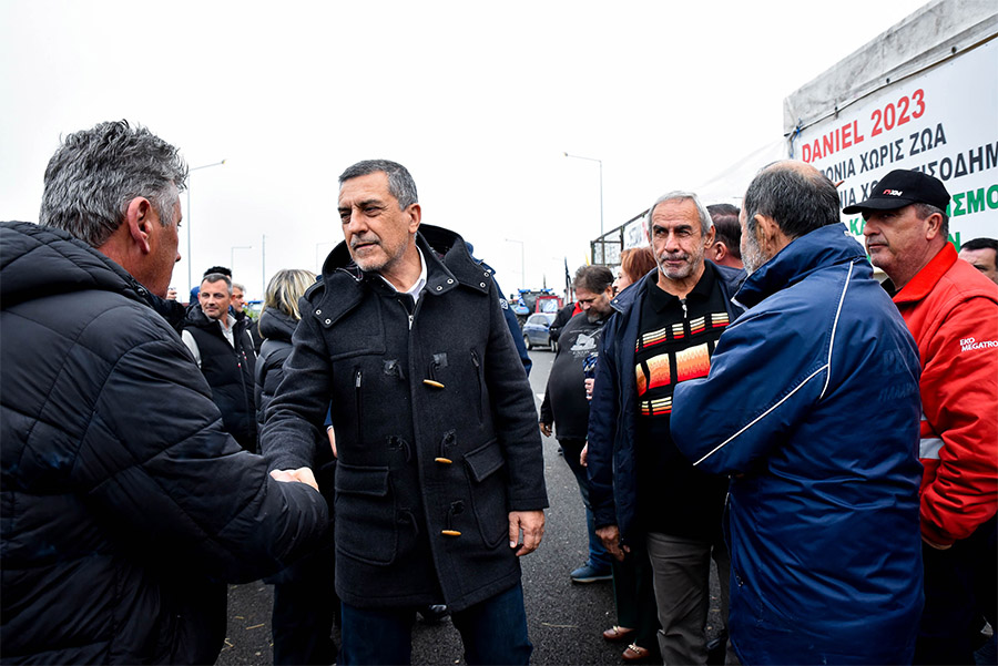 Ο Περιφερειάρχης ανέφερε ακόμη ότι η φετινή χρονιά είναι οριακή, καθώς τα κόστη παραγωγής δεν καλύπτονται, ενώ επεσήμανε:«Αντί η Πολιτεία να ενισχύει ουσιαστικά τους αγρότες που παράγουν, βλέπουμε να στηρίζονται άλλοι, οι οποίοι μάλιστα έχουν στις πλάτες τους δίκες, και οι παραγωγοί να έρχονται αντιμέτωποι ακόμη και με καταστολή».Παράλληλα, σχολίασε με δηκτικό τρόπο δηλώσεις σε τηλεοπτικά μέσα, σύμφωνα με τις οποίες οι αγρότες χαρακτηρίζονταν «χωριάτες» επειδή κλείνουν τους δρόμους, τονίζοντας ότι στην πραγματικότητα οι αγρότες είναι οι πραγματικοί «αριστοκράτες» ενώ «χωριάτες» είναι αυτοί που εκφράζουν τέτοιες αντιλήψεις, καθώς η συμπεριφορά τους αποκαλύπτει τη νοοτροπία τους.Από την πλευρά των αγροτών και των κτηνοτρόφων , εκ μέρους όλων, ο κ. Κώστας Κοκκούλης ευχαρίστησε τον Περιφερειάρχη για την παρουσία και τη διαρκή του στήριξη, τονίζοντας ότι είναι ο πρώτος που επισκέπτεται το σημείο των κινητοποιήσεων. Ζήτησε να συνεχιστεί η πίεση προς την κυβέρνηση, σε ότι αφορά τα βασικά αιτήματα ενώ αναφερόμενος ειδικότερα στους κτηνοτρόφουςεπισήμανε ότι όσοι επλήγησαν από τον «Daniel», την ευλογιά και την πανώλη βρίσκονται χωρίς εισόδημα και εκτός ουσιαστικών αποζημιώσεων.Τόνισε ότι πολλοί παραγωγοί έχασαν το σύνολο του ζωικού τους κεφαλαίου χωρίς να υπάρξει επαρκής στήριξη, χαρακτηρίζοντας τις μέχρι σήμερα ανακοινώσεις για αποζημιώσεις από τον Πρωθυπουργό «ψίχουλα».Στο πλαίσιο της συνάντησης, αγρότες και Περιφερειάρχης συζήτησαν εκτενώς και το ζήτημα των μεγάλων αρδευτικών έργων, τα οποία χαρακτηρίστηκαν απολύτως αναγκαία για την άρδευση των καλλιεργειών και τη διασφάλιση της παραγωγής τα επόμενα χρόνια. Επισημάνθηκε πως χωρίς σύγχρονες υποδομές άρδευσης, η αγροτική οικονομία της Θεσσαλίας δύσκολα μπορεί να σταθεί απέναντι στο αυξημένο κόστος και τις επιπτώσεις της κλιματικής αλλαγής.