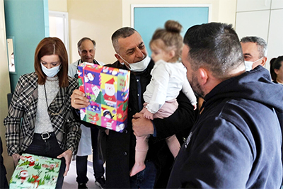 Ο κ. Κουρέτας συνομίλησε με τα παιδιά που νοσηλεύονται και τους γονείς τους, ευχήθηκε γρήγορη ανάρρωση και μοίρασε δώρα.