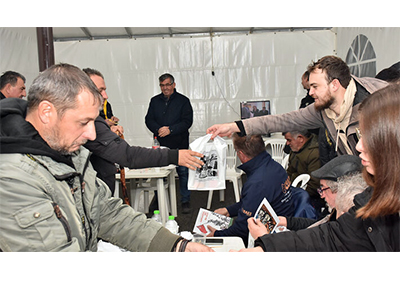 Αγρότες και κτηνοτρόφοι, που δίνουν έναν μεγαλειώδη αγώνα επιβίωσης στα μπλόκα, υποδέχθηκαν με χαμόγελα τα δώρα και τα αναμνηστικά της «Σύγχρονης Εποχής».