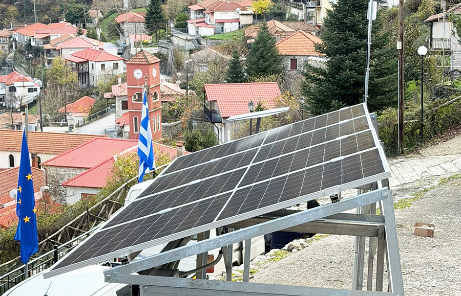 - Φωτοβολταϊκά πάνελ τοποθετημένα σε υπερυψωμένο σημείο, που τροφοδοτούν συνεχώς τον εξοπλισμό, θωρακίζοντάς τον από πλημμύρες.