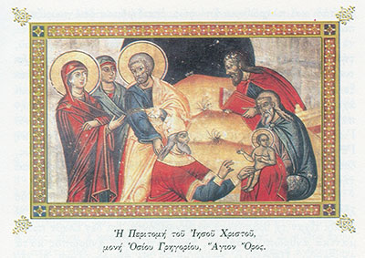 Η ΠΕΡΙΤΟΜΗ ΤΟΥ ΚΥΡΙΟΥ: Η περιτομή του βρέφους Ιησού έγινε στη Συναγωγή τῆς Βηθλεέμ. (Λουκ. 2, 5). Το Θείο Βρέφος, αφού γεννήθηκε με τον Παλαιὸ Νόμο, έπρεπε νὰ υποβληθεί και Αυτό στον τύπο, ο οποίος έπρεπε να ισχύει μέχρι την κατάργησή του. Ο Απόστολος Παύλος λέει σχετικά: “ότε δὲ ήλθε το πλήρωμα του χρόνου, εξαπέστειλεν ο Θεός τον υιὸν αυτού, γενόμενον εκ γυναικός, γενόμενον υπὸ νόμον, ίνα τους υπὸ νόμον εξαγοράση, ίνα την υιοθεσίαν απολάβωμεν” (Γαλ. δ΄4,5).