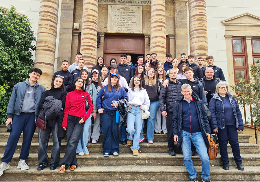 Φτάνοντας στη Χίο, το πρόγραμμα ξεκίνησε με μια επίσκεψη στη Δημόσια Κεντρική Βιβλιοθήκη Χίου «Αδαμάντιος Κοραής». Η Βιβλιοθήκη «Α. Κοραής», ένας από τους σημαντικότερους πνευματικούς θησαυρούς του νησιού, φιλοξενεί μια εντυπωσιακή συλλογή παλαιών βιβλίων, χειρογράφων και σπάνιων εκδόσεων, αποτελώντας ένα ζωντανό μνημείο της τοπικής πνευματικής κληρονομιάς. Στη συνέχεια, ακολούθησε ένας περίπατος στο επιβλητικό Κάστρο της Χίου, γνωστό και ως Φρούριο της Χώρας, ένα μνημείο που αποτελεί ζωντανή ιστορία, με τα τείχη του να μαρτυρούν αιώνες κατακτήσεων, πολέμων και συνύπαρξης πολιτισμών, από τη βυζαντινή εποχή έως την οθωμανική κυριαρχία.