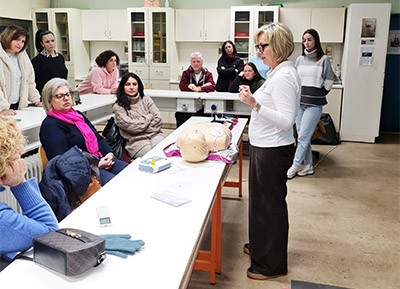 Στόχος της δράσης ήταν η παροχή βασικών γνώσεων και δεξιοτήτων στους εκπαιδευτικούς, ώστε να παρεμβαίνουν άμεσα και αποτελεσματικά σε επείγοντα περιστατικά υγείας που ενδεχομένως προκύψουν τόσο στον χώρο του σχολείου όσο και έξω από αυτόν. Συγκεκριμένα, έγινε επίδειξη της τεχνικής της Καρδιοπνευμονικής Αναζωογόνησης και της χρήσης απινιδωτή, καθώς και των ενδεδειγμένων ενεργειών για τη διαχείριση λιποθυμικών επεισοδίων, περιστατικών πνιγμονής και ρινορραγίας. Ακολούθησε εφαρμογή των συγκεκριμένων τεχνικών από τους εκπαιδευτικούς και επίλυση αποριών.