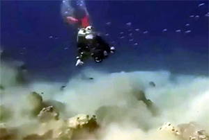 Στις εικόνες φαίνονται πολλοί δύτες να κολυμπούν ανάμεσα σε έναν κοραλλιογενή ύφαλο. Στην αρχή, όλα φαίνονται γραφικά. Αλλά όλα αυτά αλλάζουν γρήγορα όταν αρχίζει ο σεισμός, ο οποίος σηκώνει σκόνη και βρωμιά από το βυθό της θάλασσας.