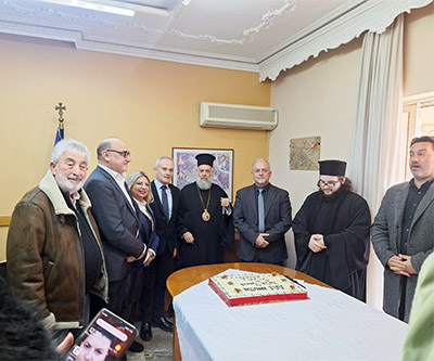 Ο Σεβασμιότατος αφού ευλόγησε την πρωτοχρονιάτικη πίτα απηύθυνε στους παρευρισκόμενους ολόθερμες ευχές για υγεία, χαρά και ευλογία για το Νέο Έτος.