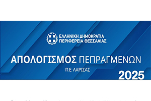Η Περιφέρεια Θεσσαλίας διοργανώνει εκδήλωση με θέμα «Απολογισμός Πεπραγμένων της Περιφερειακής Αρχής Θεσσαλίας στην ΠΕ Λάρισας για το έτος 2025» τη Δευτέρα 2 Μαρτίου 2026 και ώρα 19:30, στο Divani Palace Larissa.