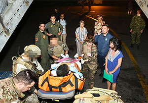Επίσης, με εντολή της Κυβέρνησης, βρίσκεται σε εξέλιξη δεύτερη αποστολή επαναπατρισμού με ναυλωμένη πολιτική πτήση (Lifeline) δια σωληνωμένου Έλληνα τραυματία, ο οποίος χειρουργήθηκε χθες σε γαλλικό στρατιωτικό νοσοκομείο. Η κατάσταση του κρίνεται σοβαρή αλλά σταθερή, ενώ πρέπει να χειρουργηθεί πάλι εντός 48 ωρών. Στο αεροσκάφος θα επιβιβασθεί και ο γιος του (16-17 ετών).